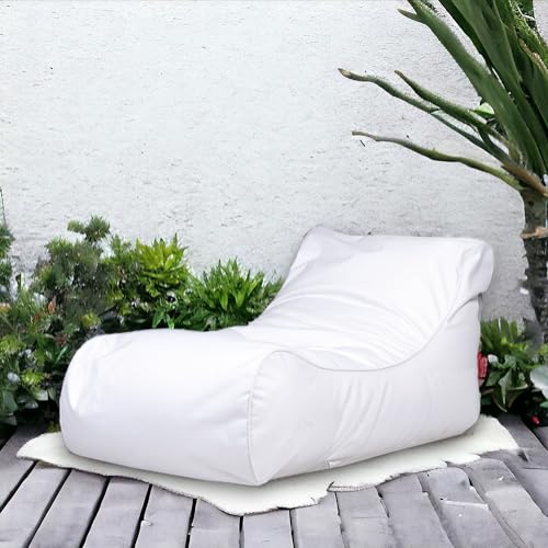 Ecopuf Master Pouf Poltrona Sacco Chaise Longue da Esterno Pouf a Sacco Lettino in Poliestere Impermeabile con Tasca Laterale Portaoggetti Poltrona a Sacco Colore Bianco Dim 115x65x60 Cm