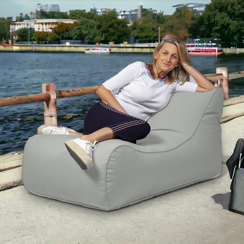 Ecopuf Master Pouf Poltrona Sacco Chaise Longue da Esterno Pouf a Sacco Lettino in Poliestere Impermeabile con Tasca Laterale Portaoggetti Poltrona a Sacco Colore Perla Dim 115x65x60 Cm
