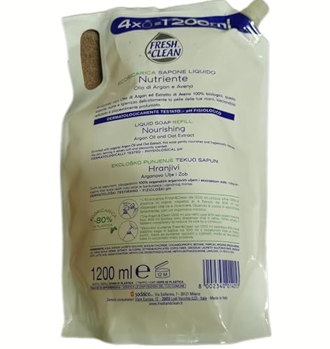 6 ecoricariche Fresh & Clean Sapone Liquido Nutriente Olio di Argan e Aveno da 1200ml