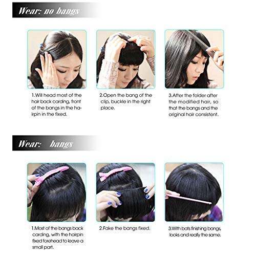 Facile da indossare: frangia piatta con asta con 2 clip antiscivolo. È super facile e veloce da indossare e rimuovere la frangia senza danneggiare i tuoi capelli. Si fondono perfettamente con i capelli normali in modo naturale.