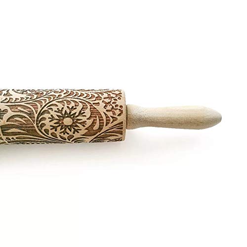ECOSWAY - Mattarello in legno con stampa laser a forma di fiore, con incisione laser a forma di fiocco di neve, impresso inciso, per biscotti in rilievo, 39 x 5 cm