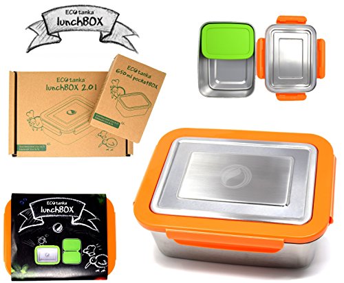Ecotanka 2,0L Lunchbox | Ideale per Bambini, escursioni, Ufficio, Scuola e campeggio | pane Dose Bento Box | pregiato tessuto, rostfreien in acciaio inox (304) | ecologico, nachhaltig - Senza BPA - Resistente e duraturo - Scatola in acciaio inox | ecologico vivande mitnehmen, Acciaio INOX, 2,0l lunchBOX 1x 0,65l pocketBOX