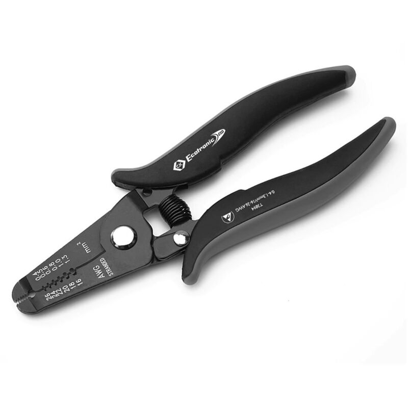 Per lo stripping sicuro e delicato di linee fini e isolate con un nucleo fisso in applicazioni in cui il danno da parte della ricarica elettrostatica deve essere evitato sei coppie di taglio preimpostate per rivestimento fine, linee isolate con un nucleo fisso, 0,4, 05, 0,6, 0,8, 1,0 e 1,3 mm (16-26 AWG) Adatto per lo stripping di tutto l'isolamento della linea comune taglio in acciaio per utensili speciali, induriti a lunghe prestazioni taglierina integrata per taglio di rame morbido tubi fino a 3 mm Ø/8 awg cottura a zone con punte dentate per afferrare le linee e la flessione di loops maniglie derivate elettrosticamente - resistenza di divisione 108 manici a due componenti in esecuzione a volta meccanici di bloccaggio per il blocco della coppia di taglio in posizione chiusa superficie nera -bruciata per la protezione della corrosione e una ridotta apertura molla di ritorno lieve per un migliore comfort In ripetizione lavoro articolazione con un noleggio di acciaio inossidabile