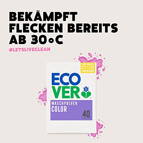 Ecover, detersivo ecologico in polvere per colorati, concentrato, fragranza: lavanda, 4 confezioni da 1,2 kg [etichetta in lingua italiana non garantita]
