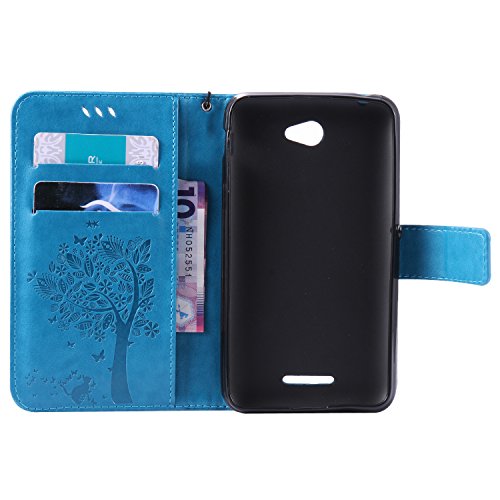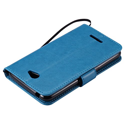 Ecoway per cellulare custodia/cover/Cover/motivo gatti farfalle cotone stampato design Folio PU Custodia in pelle case cover in stile libro con funzione leggio e scomparti per carte di credito blu blau Sony Xperia E4