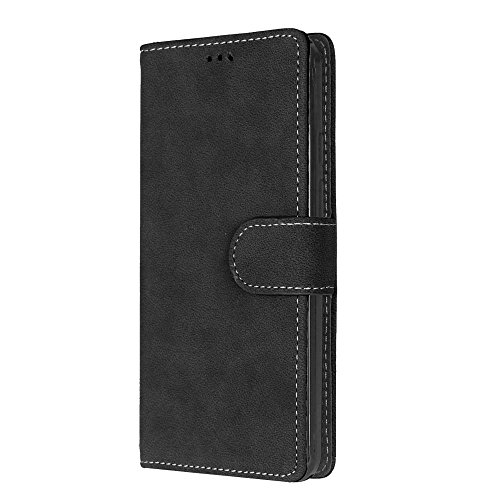 Ecoway Custodia in pelle Retro Frosted PU per Alcatel one touch pop 3 5.5 5025D (5.5 Zoll),Caso / copertura / telefono / involucro del modello PU con a Bookstyle tasche carte di credito funzione con interno morbido in TPU Portafoglio Supporto Slot Schede Protettiva Bumper Caso - nero