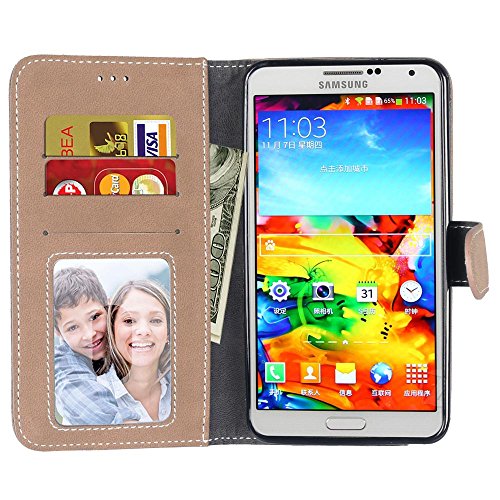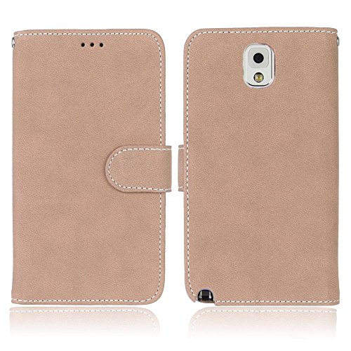 Ecoway Custodia in pelle Retro Frosted PU per Samsung Galaxy Note 3 Note3 N9000,Caso / copertura / telefono / involucro del modello PU con a Bookstyle tasche carte di credito funzione con interno morbido in TPU Portafoglio Supporto Slot Schede Protettiva Bumper Caso - beige