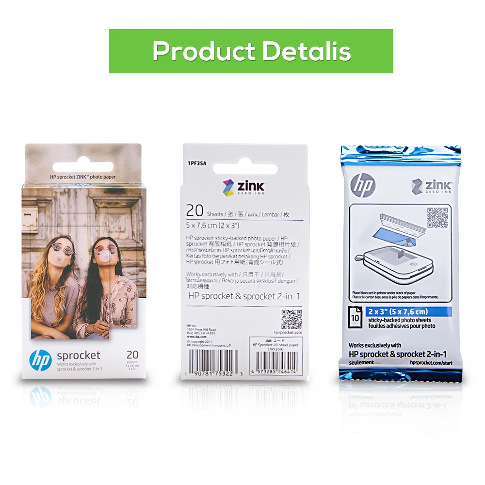 Ecowell 2x3" Small Zink Sticker Paper photo paper compatible for HP Sprocket or HP Sprocket 2-in-1 Photo Printer