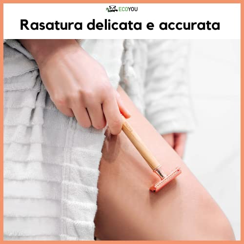 EcoYou Rasoio per Donne con Manico in Legno d'Ulivo - Rasoio di Sicurezza per Donna, Rasatura Corpo, Gambe, Ascelle - Imballaggio Senza Plastica, Lama Intercambiabile - 5 Lame - Oro Rosa