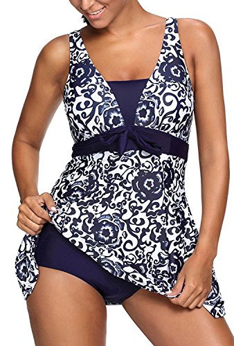 Ecupper Costume intero da donna motivo floreale, taglie forti Navy XXXXX-Large