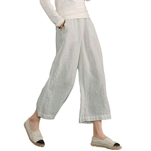 Ecupper - Pantaloni Capri da donna, in cotone elasticizzato, con vita elasticizzata, stile casual, tagli comode