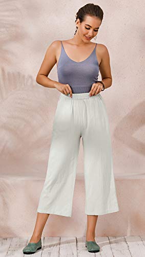 Caratteristiche. Pantaloni a 3/4 in cotone, pantaloni capri a vita alta con due tasche laterali per una maggiore comodità, la vita elasticizzata e senza chiusura li rendono facili da indossare e togliere.