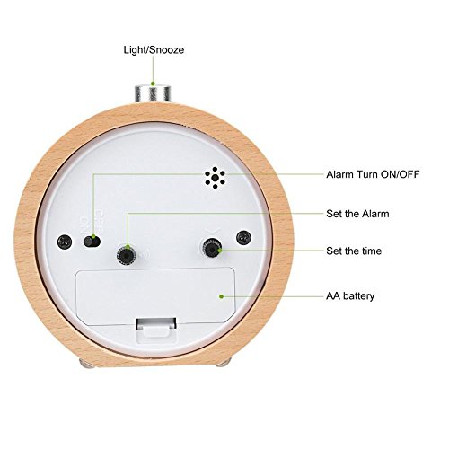 Ecvision - Sveglia da comodino, classica e rotonda, in legno di faggio, silenziosa, 90*90*50 mm, Light Wooden Design