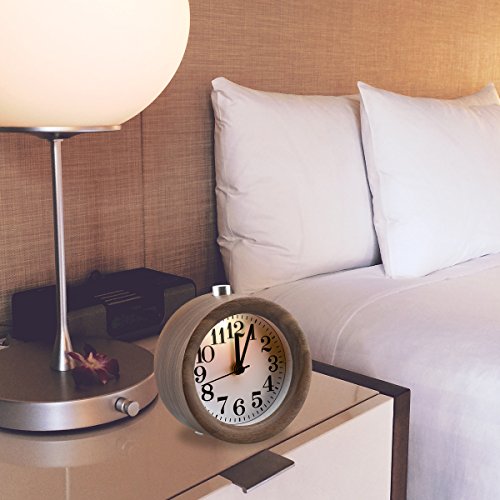 Ecvision - Sveglia da comodino, classica e rotonda, in legno di faggio, silenziosa, 90*90*50 mm, Black Walnut Wooden