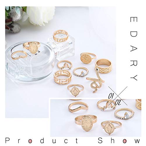 Edary - Set di anelli da nocca vintage, a forma di serpente, con pietre preziose, color oro, per donne e ragazze, Alumide,