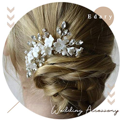 Edary Cerchietto per capelli da sposa in argento con fiore di vite, accessorio per capelli da sposa con strass per donne e ragazze