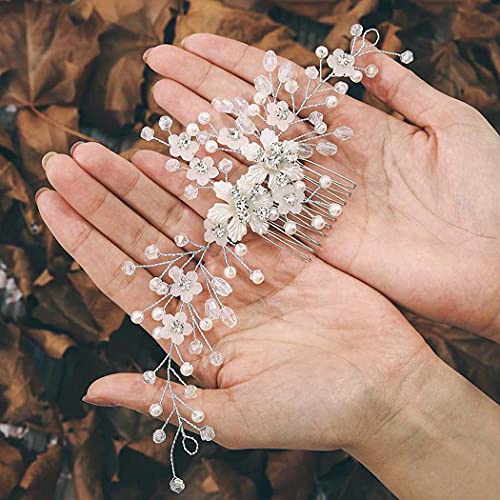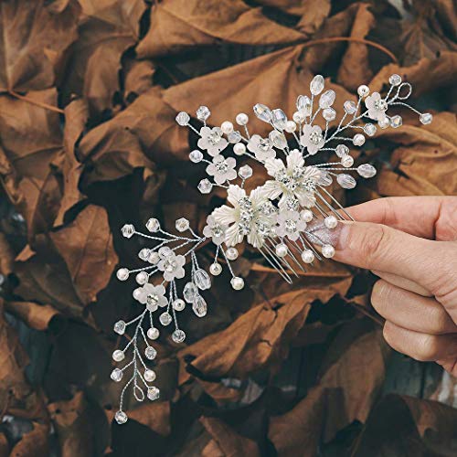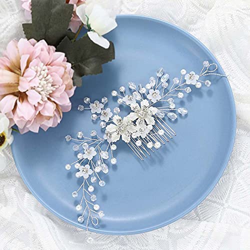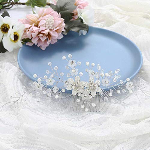 Edary - Pettine per capelli da sposa con fiore in argento, con cristalli, accessorio per capelli per donne e ragazze