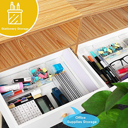 EDATOFLY 7 pezzi Organizer Cassetto, Scatole Stoccaggio Plastica Multifunzionale Trasparente Divisori per Camera da Letto, Ufficio, Credenze, Cucina, Bagno (4 Misure)