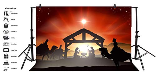 EdCott 10x7ft Presepe Natale Sfondo Fotografia Storia della Bibbia Sacra Famiglia Maria e Giuseppe Betlemme Cristo Bambino Nascita Gesù Mangiatoia Silhouette Sfondo Studio fotografico Puntelli