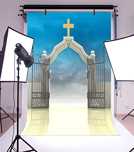 EdCott 5x7ft Ingresso al paradiso Sfondo fotografico Astratto Cristianesimo Gesù Croce cristiana aperto Culto Fede Cielo Porta Photo Studio Puntelli