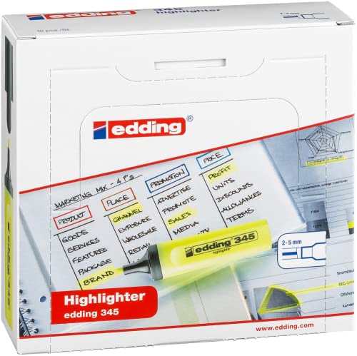 Edding 345 - Evidenziatore ricaricabile, punta a scalpello da 2 a 5 mm, 10 evidenziatori blu chiaro