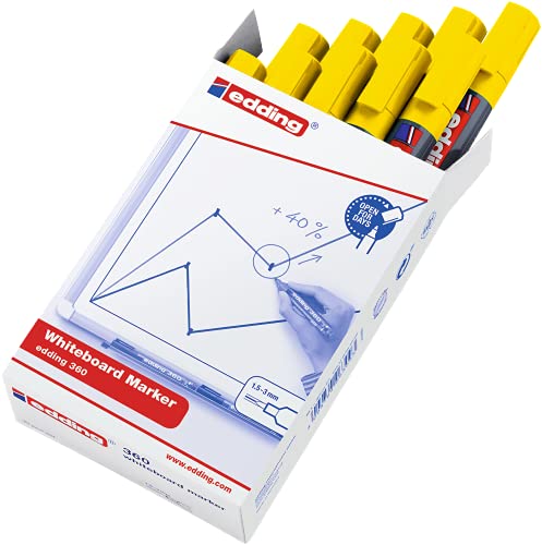 Edding 360 Marcatore per Lavagne Bianche, Giallo, 10Pz, Punta Tonda 1.5-3 Mm, per Lavagne Bianche, Lavagne a Fogli Mobili, Bacheche, Lavagne Magnetiche e Memo, Sketchnotes