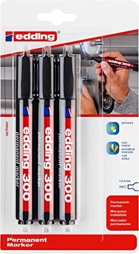 Edding 300 Marcatore Permanente, Nero, 3 Penne, Punta Tonda 1.5-3 Mm, Impermeabili, per Cartone, Plastica, Vetro, Legno, Metallo e Tessuto