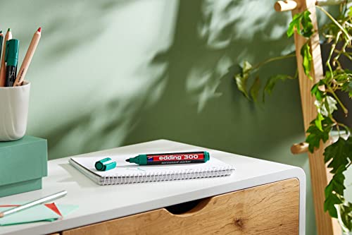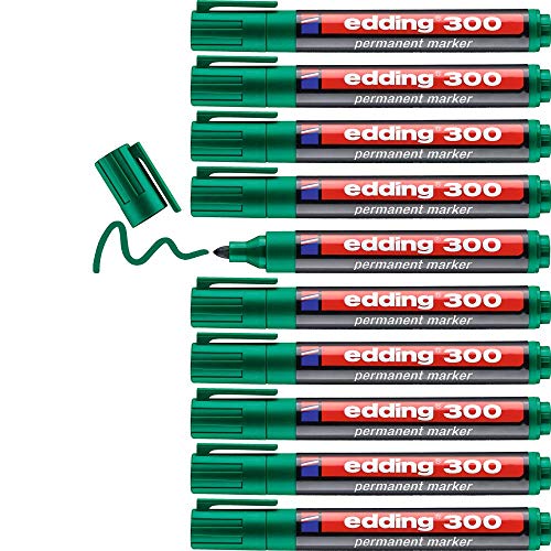 Edding 300 pennarelli permanenti - verde - 10 penne - punta rotonda 1,5-3 mm - impermeabile, ad asciugatura rapida - per cartone, plastica, vetro, legno, metallo e tessuto