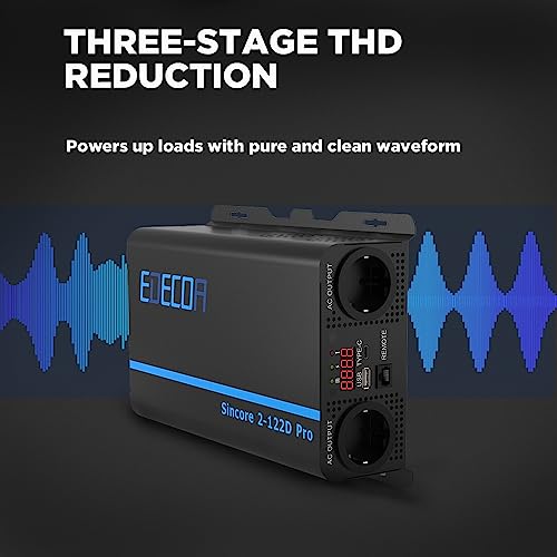 EDECOA inverter 1200w onda sinusoidale pura convertitore di tensione 24v 230v LCD 2X USB e telecomando convertitore 1200w e picco per pochi microsecondi 2500w converter