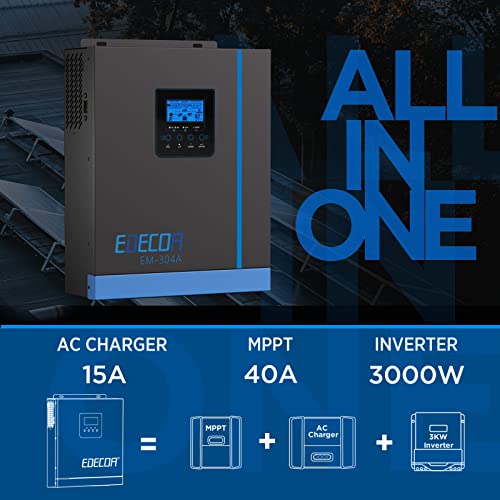 EDECOA Inverter ibrido 48v 3000w 220v 230v 3.2KVA/3000W Caricatore solare MPPT 55A Onda Pura (Off-Grid) con caricabatterie, rete di priorità, regolatore di carica solare