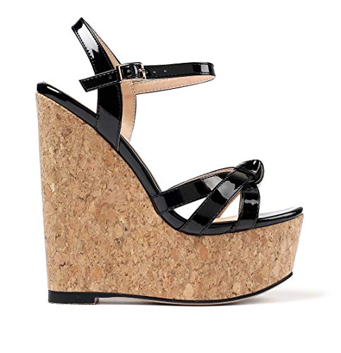 EDEFS Sandali con Cinturino alla Caviglia Donna,Sandali con Zeppa Donna,Two-tone EU39