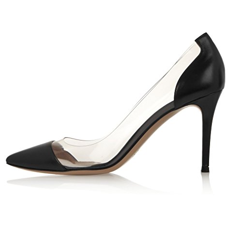 EDEFS Scarpe Chiuse Donna,Scarpe da Sposa con Tacco Trasparente Scarpe Black Taglia EU39