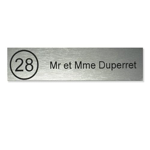 Targhetta nominativa con numero civico di cassetta delle lettere in formato 99 x 24 mm di colore grigio argentato. Piastra di cassetta delle lettere personalizzabile su 1 riga di testo inciso di colore nero. Piastra ideale per le taglie standard delle scatole alle lettere edelen. Piastra in plastica di 1,6 mm di spessore, resistente alle intemperie e ai raggi UV. Grazie al suo adesivo, questa piastra per cassetta delle lettere edelen è molto