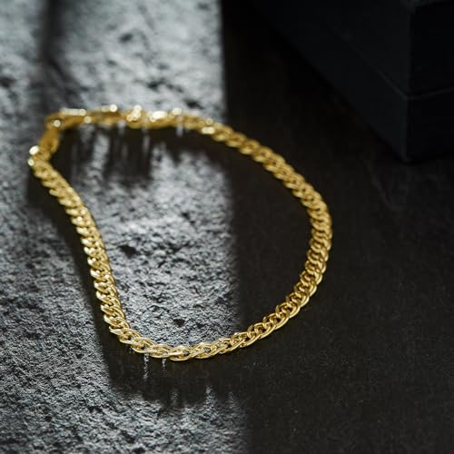 EDELIND Bracciale Modello Doppia grumetta Donna in Oro Giallo, 8 carati 333, largh. 3,5 mm, p. 1.8 g, lungh. 19 cm, con Chiusura ad Artiglio di Aragosta, Marchio di Garanzia Made in Germany