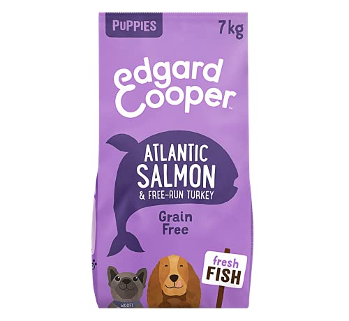Edgard & Cooper Crocchette Cani Puppy Junior Cuccioli Croccantini Cane Cibo Secco per Cani Senza Cereali Mangime Naturale 7kg Salmone & Tacchino Fresco, Alimentazione Completa, Sana ed Equilibrata