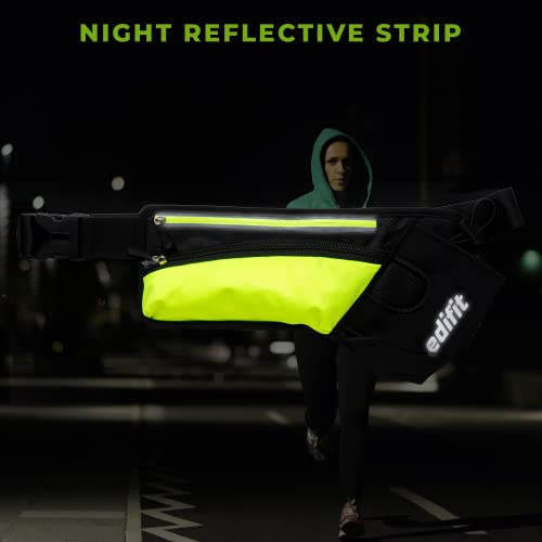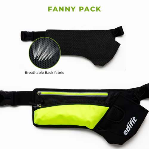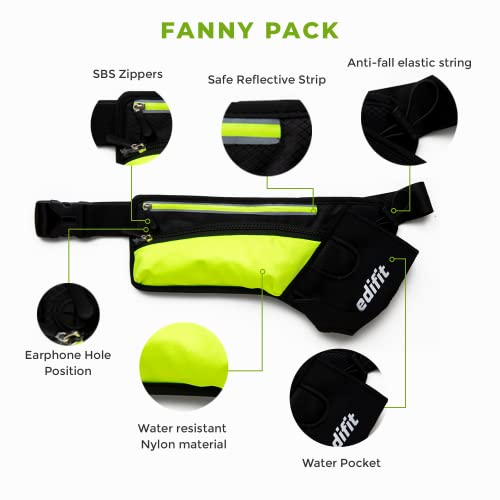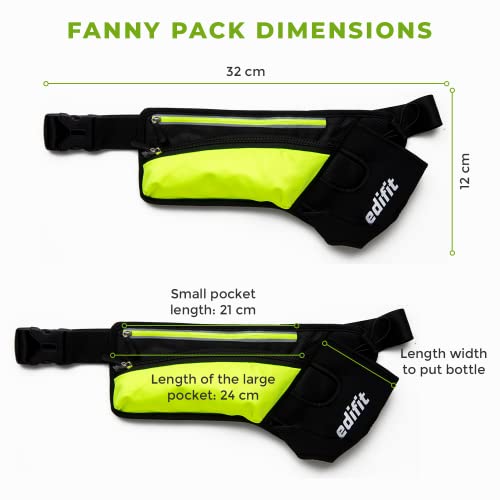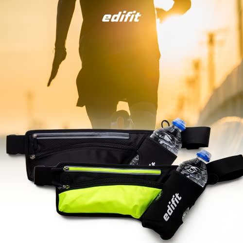 Edifit, Marsupio Running, Uomo Donna, Da Corsa, Accesori, con Porta Bottiglie, Impermeabile, con Chiusura a zip, Cinturino Regolabile e Riflettente (Giallo)