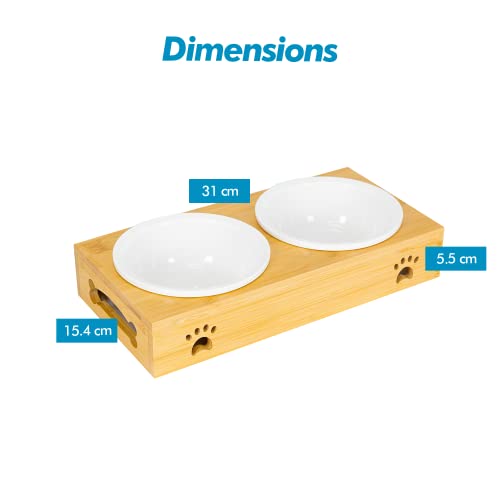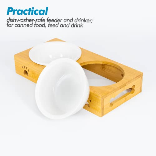 Edipets, Mangiatoia per cani gatti, abbeveratoio per cani gatti, legno, piatto singolo, doppio, triplo rimovibile in ceramica o acciaio inossidabile, base in bambù antiscivolo (ceramica, doppio)