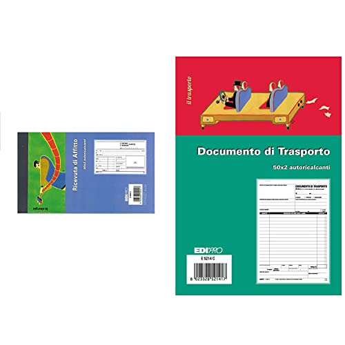 EDIPRO - E5504C - Blocco ricevuta d'affitto 50x2 autoricalcante f.to 9,9x17 & E5214C - Blocco documento di trasporto 50x2 autoricalcante f.to 14.7x22 cm