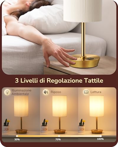 [Luminosità Regolabile su 3 Livelli] Questa moderna lampada da 2 pezzi offre tre opzioni di regolazione della luminosità (30%-70%-100%), da una luce morbida per la lettura a una luce intensa per il lavoro, per soddisfare le diverse esigenze. Si può regolare facilmente toccando la base