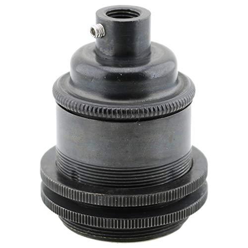 Edison vite (E27) in ottone massiccio con messa a terra in finitura bronzo scuro con 2 anelli paralumi e ingresso filettato da 10 mm