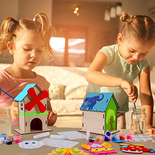 【Casetta Uccellini da Costruire】 Questo kit di case per uccelli in legno contiene 3 casette per uccelli in legno, 4 set di colori, 3 patatine per il vento, 1 piattaforma di miscelazione, 4 pennelli, 6 fiori decorativi, 3 corde, 2 colla, 2 tavolo da disegno, in modo che che Bambini che desiderano i modelli di disegno desiderati e hanno esperienze più diverse.