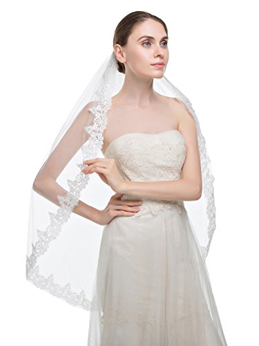 Edith qi 1 livello Punta delle dita Lunghezza Waltz Veils nuziale con paillettes argento foderato bordo in rilievo