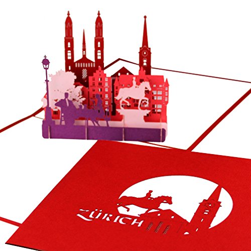 Edition Colibri - Biglietto tridimensionale 3D pop-up "Zurigo - Panorama con mongolfiera", biglietto d'auguri con panorama, ideale come souvenir, invito e buono regalo per un viaggio in città