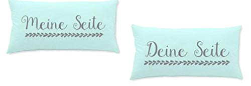 Home Edition Confezione da 2 federe in jersey con scritte per cuscino, 40 x 80 cm, colore: verde acqua