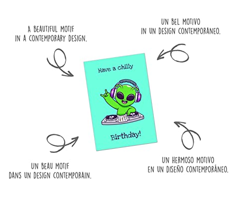 Edition Seidel Biglietto di auguri di compleanno con busta. Biglietto di auguri Billet chilly Happy Birthday humor divertente adolescente ragazzo ragazza alien party DJ (G3496 SW023)
