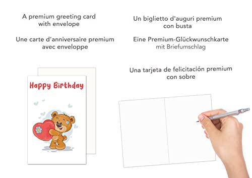 Edition Seidel Biglietto di auguri di compleanno con busta. Biglietto di auguri Billet Happy Birthday humor divertente uomo donna ragazzo ragazza adolescente bambini orso cuore rosso (G3472 SW023)