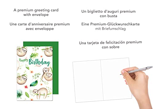 Edition Seidel Biglietto di auguri di compleanno con busta. Biglietto di auguri Billet Happy Birthday uomo donna bambino bradipo giungla (G3490 SW023)