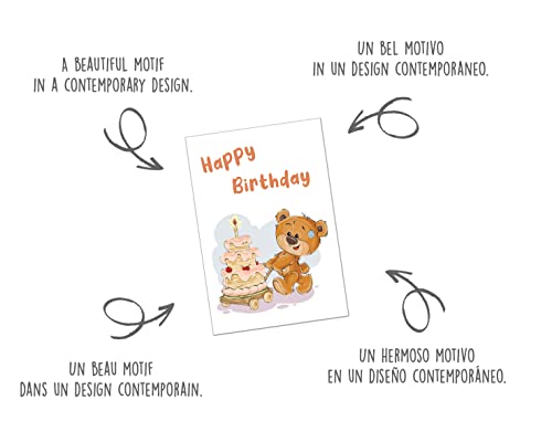 Edition Seidel Biglietto di auguri di compleanno con busta. Biglietto di auguri Billet Happy Birthday humor divertente uomo donna ragazzo ragazza adolescente bambini orso festa torta (G3478 SW023)