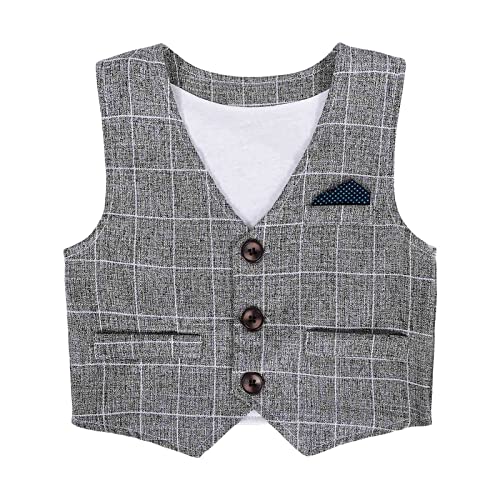 Edjude Bambino Ragazzi Gentlemans Vestito Vestito Manica Lunga Vestito Camicia Pantaloni Gilet Bowtie Tuxedo Pagliaccetti Bambino Festa di Compleanno Vestiti, Grigio 01736, 0-6 Mesi