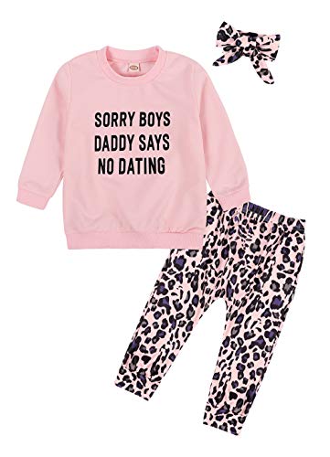 Edjude Felpa Neonata Bimba Completi Casual Autunnali Casual Manica Lunga Pantaloni Leopardati Fascia 9-12 Mesi Rosa